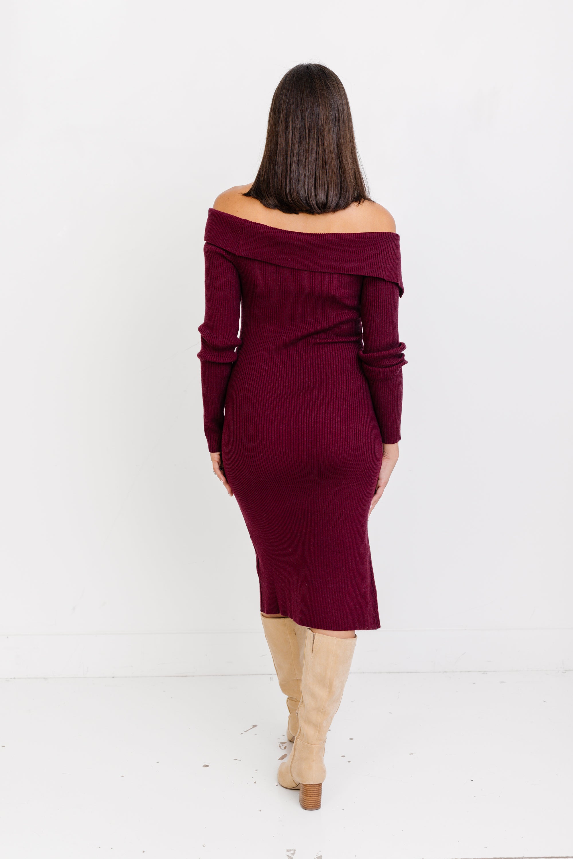 Cozy meets chic in the Dreamline Midi Dress — a knit, off-the-shoulder silhouette made for effortless elegance. With its soft texture and flattering fit, this dress perfectly balances warmth and sophistication, making it ideal for today’s cool-weather outings and upcoming holiday gatherings.
